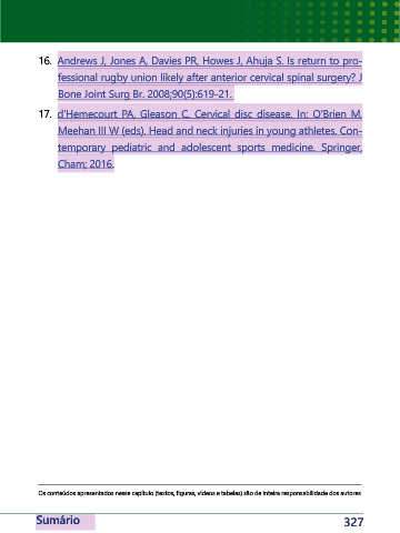 Page 329 - Livro Tratado de lesões da coluna no esporte