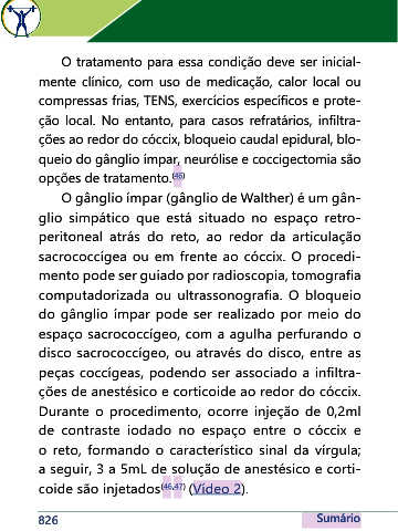 peças coccígeas, podendo ser associado a infiltra-